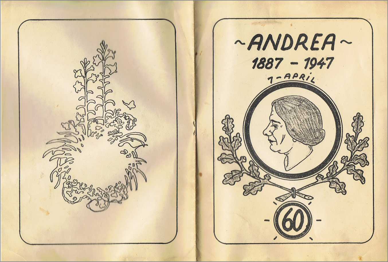 Svends sang til Andrea på hendes 60 års fødselsdag. Her omslaget, tegnet af Svend.