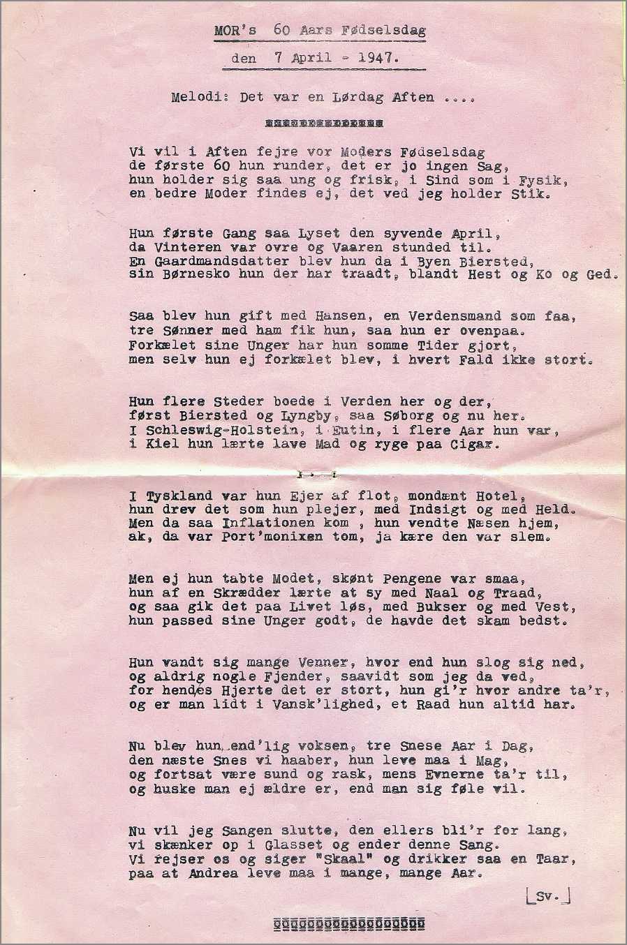 Svends sang til Andrea på hendes 60 års fødselsdag.