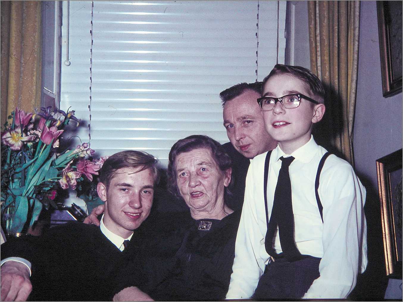 Andreas 80 års fødselsdagsfest 1967. Svend, Carl Johannes, Hans og Andrea.