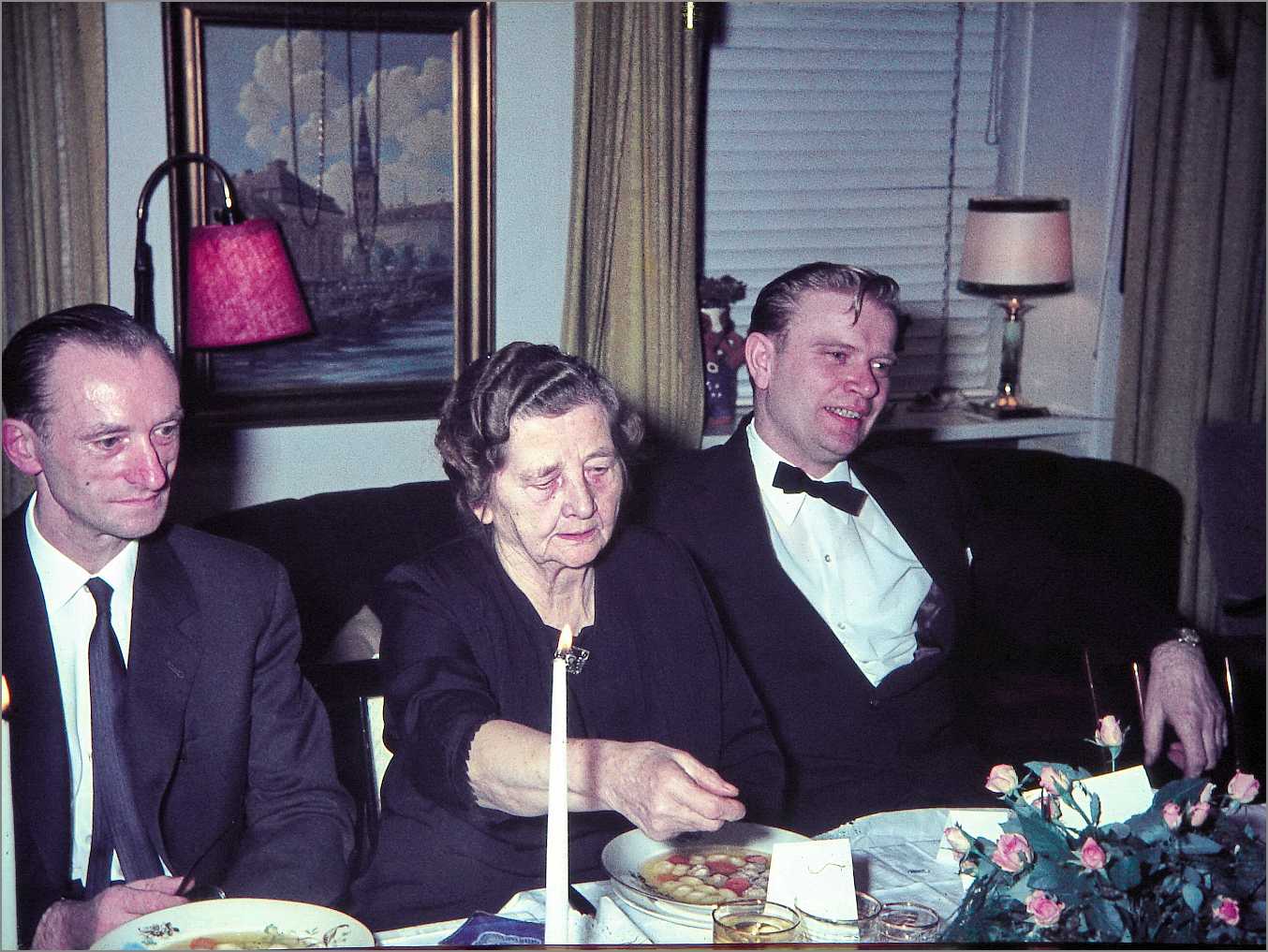 Andreas 80 års fødselsdagsfest 1967. Svend, Andrea og Hans.