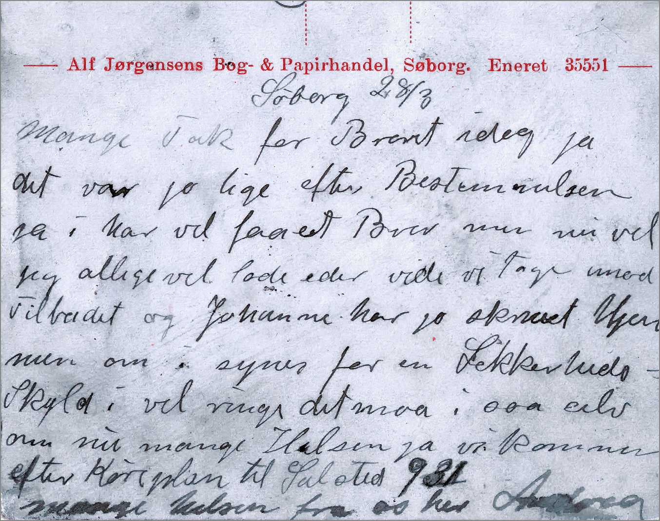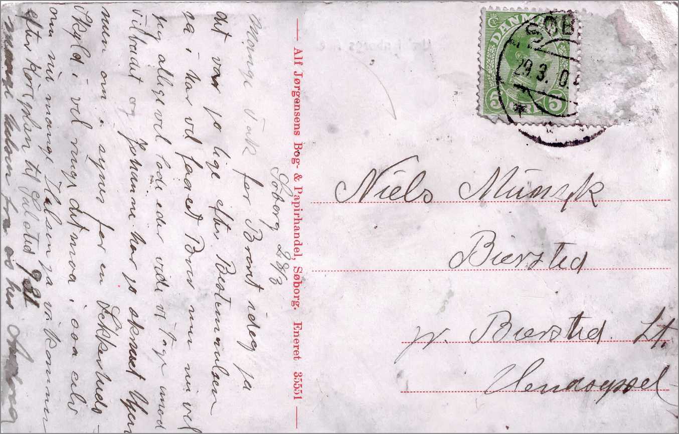 Andrea sender postkort til sine forældre hjemme i Biersted 29/3-1908 (eller 1909).