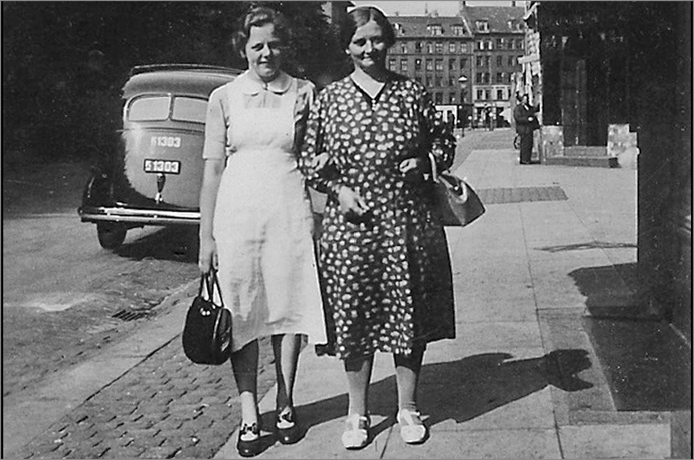 Hans skriver: En glad Andrea nys ankommet til København med Gudrun Bove i armen. Året er 1939.