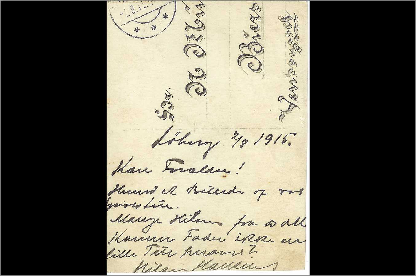 Andrea skriver til sine forældre hjemme i Biersted 2/8-1915.