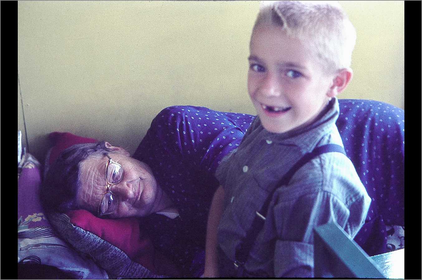 Børnebørnene var lykkelige for at besøge farmor som her Lasse der vist har vækket hende.