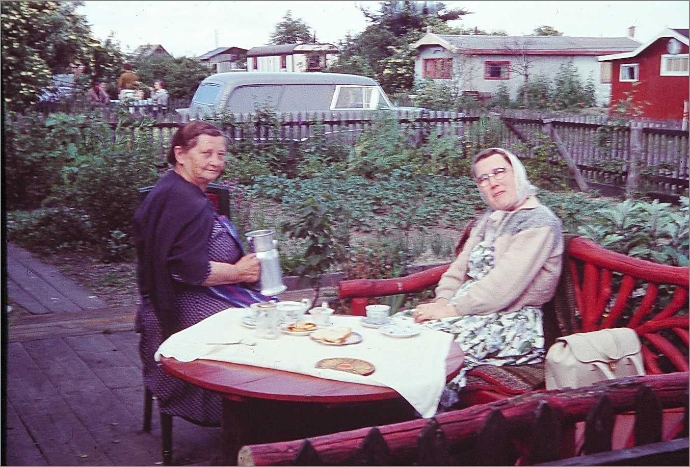 Andrea og Margit fra Hovedgaden 38 får sig en sludder i haven...