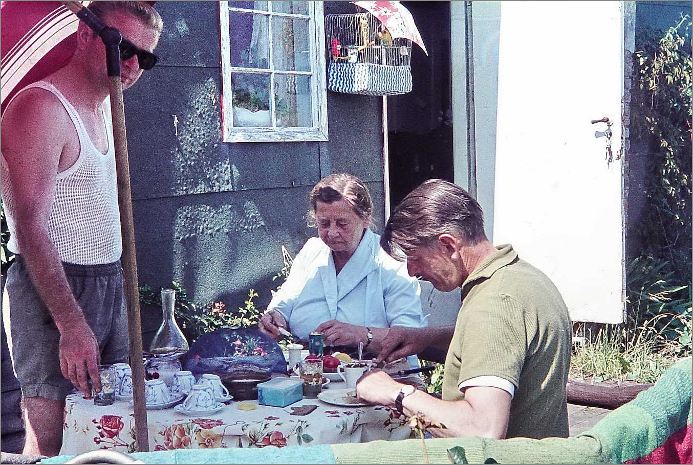 Kalle, Hugo Berg og Ruth til kaffe hos Andrea.