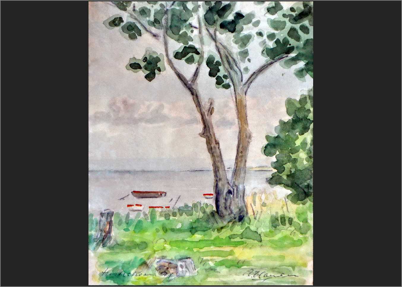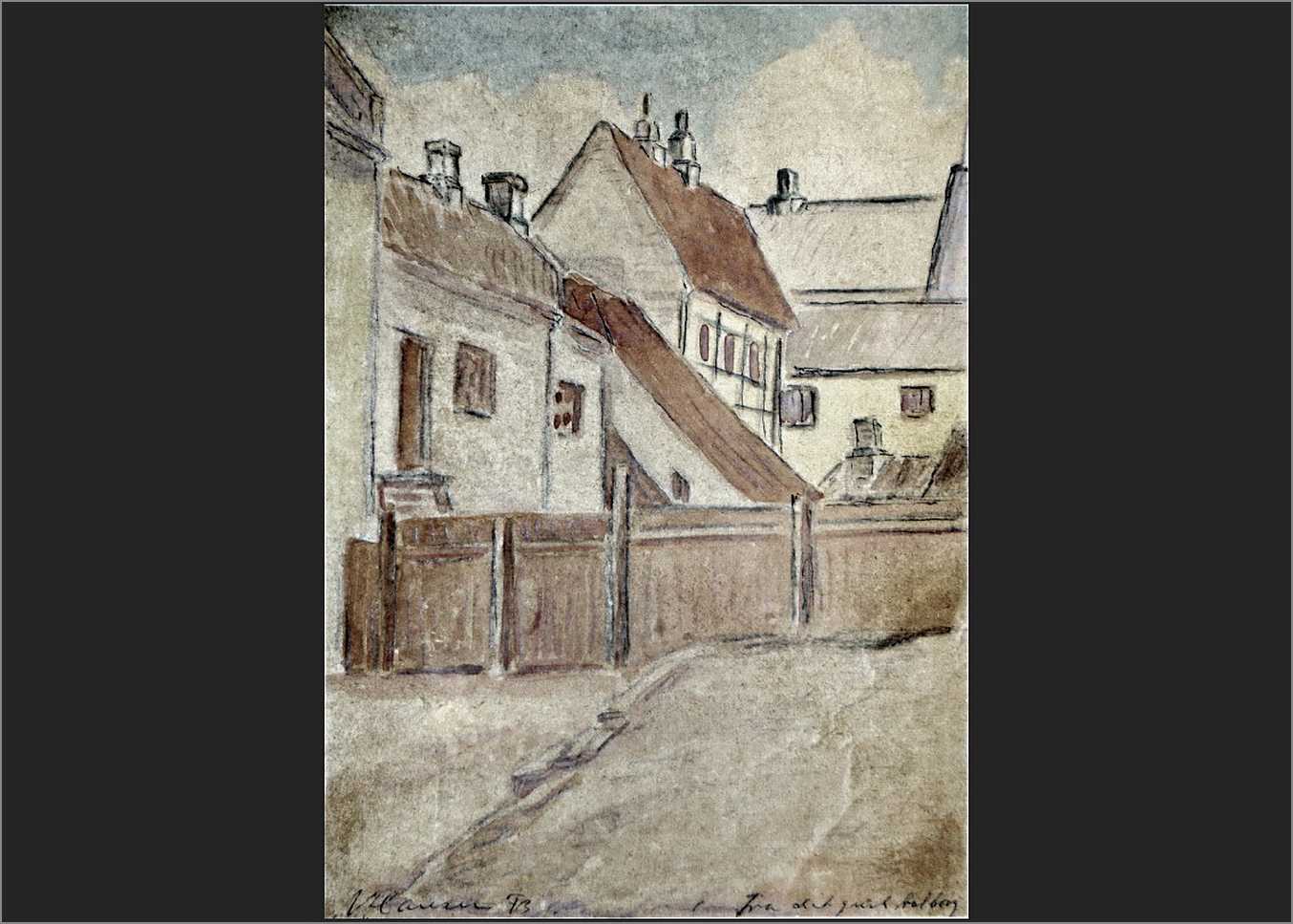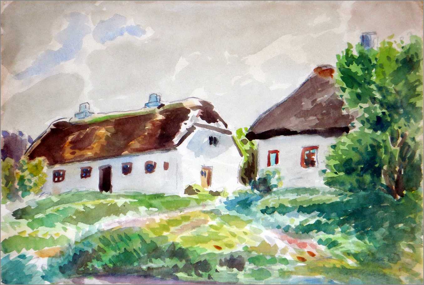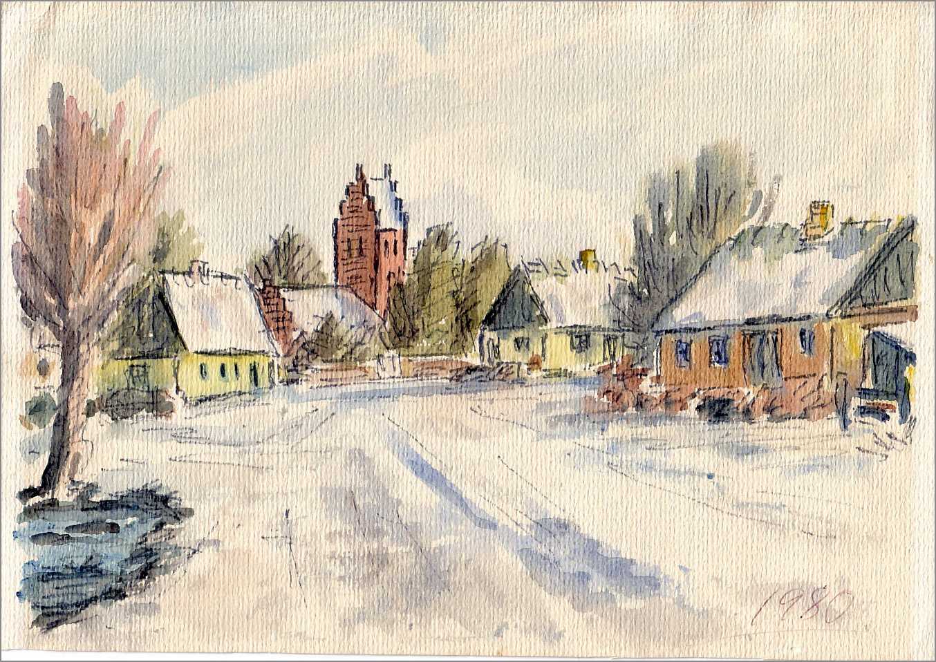 Akvarel af Viktor. Bedsteforældrenes gård i Biersted