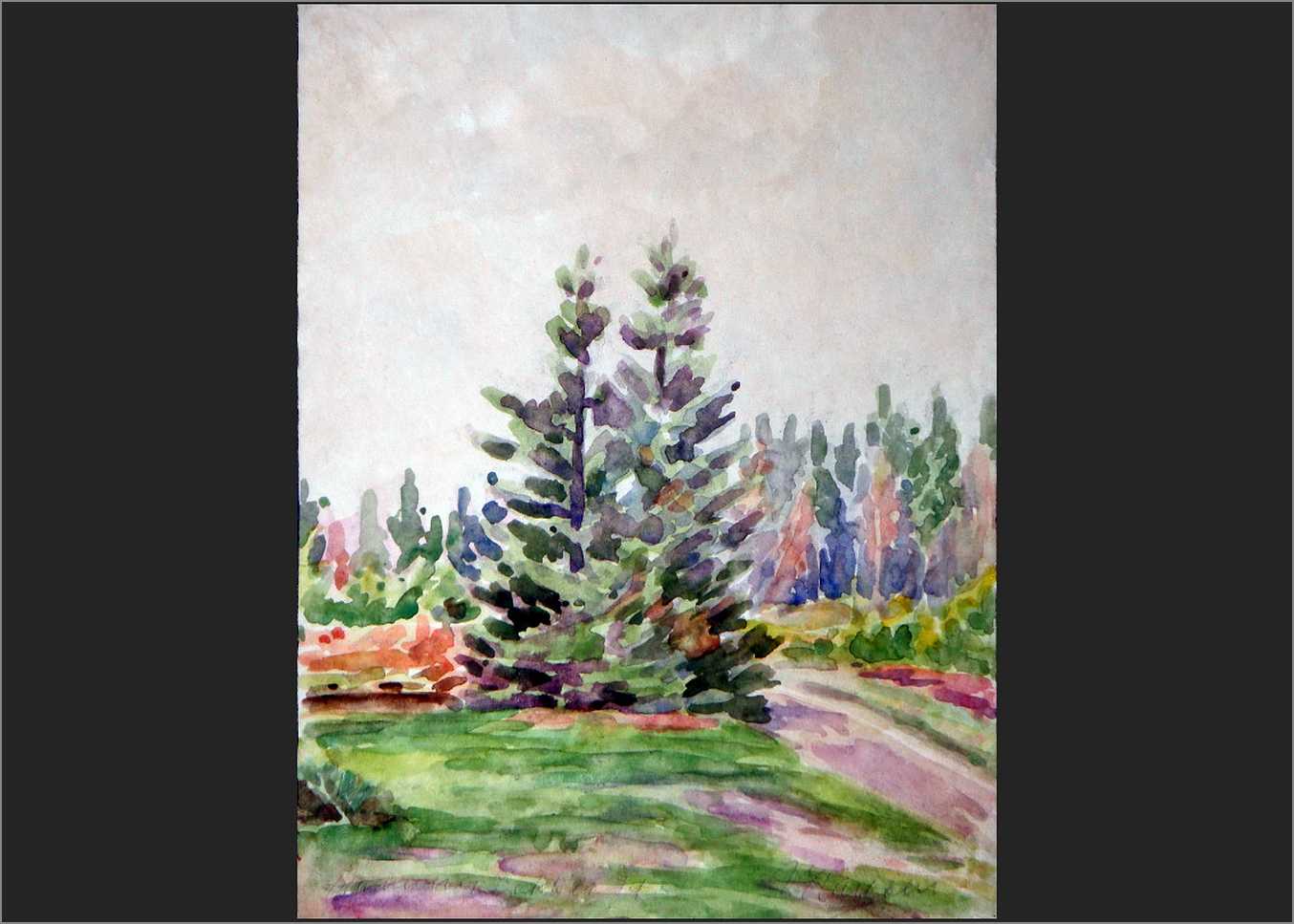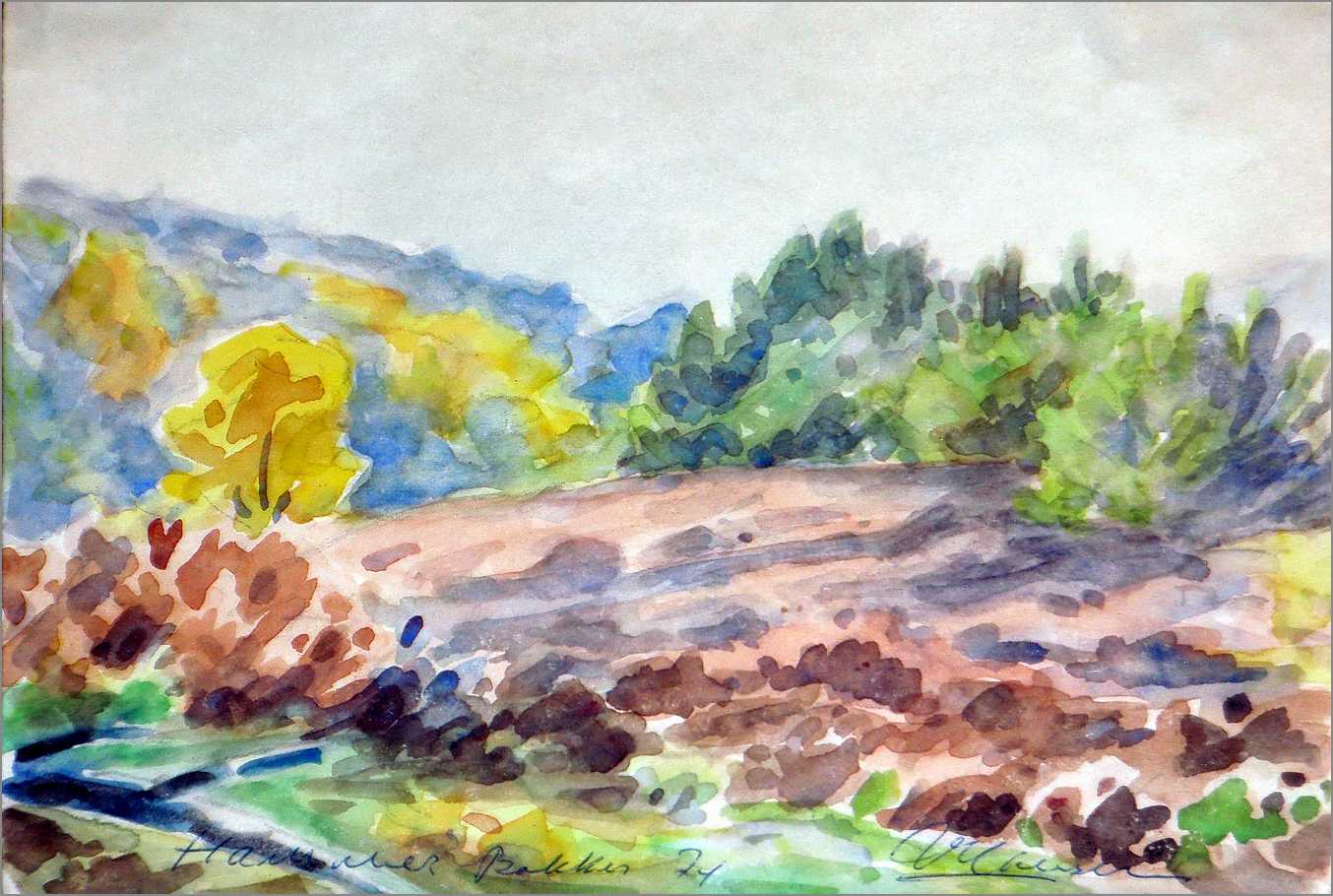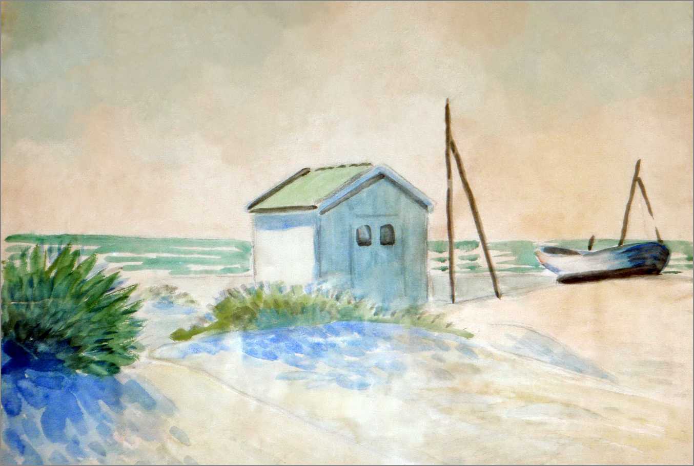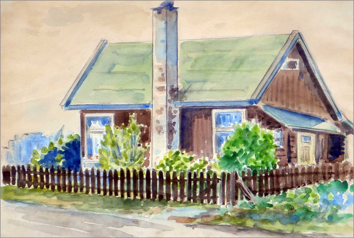 Akvarel af Viktor. Bedsteforældrenes gård i Biersted