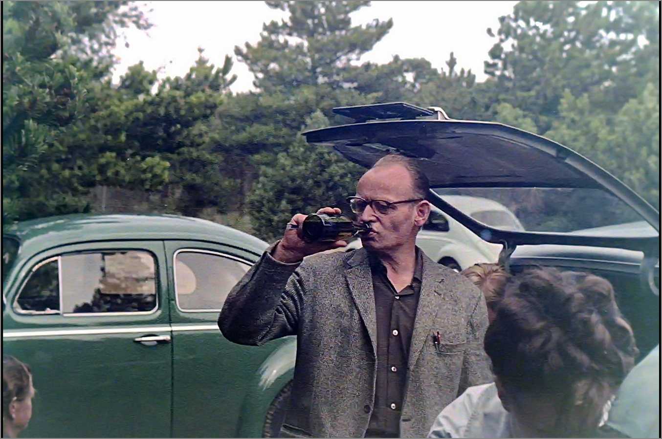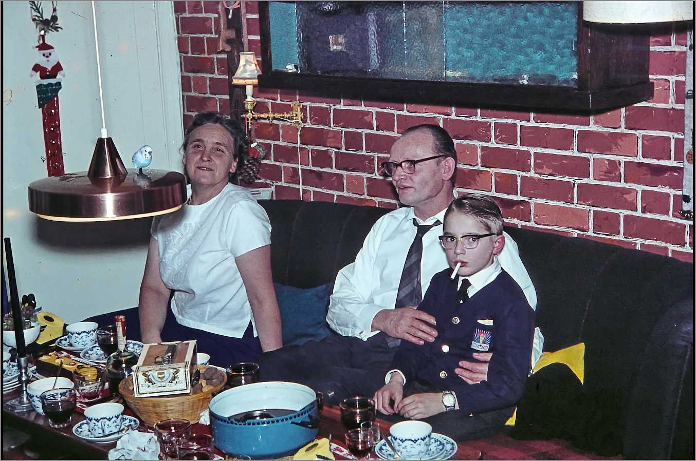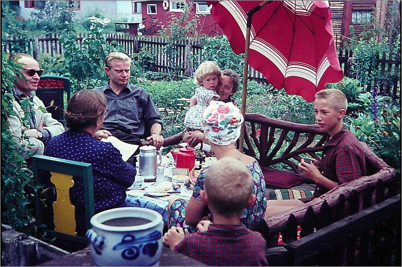 Viktor, Gudrun, Ruth, Kalle, Per, Lasse og Svend (fotograferer) på besøg hos Viktor og Gudrun i Aalborg, Hadsundvej.