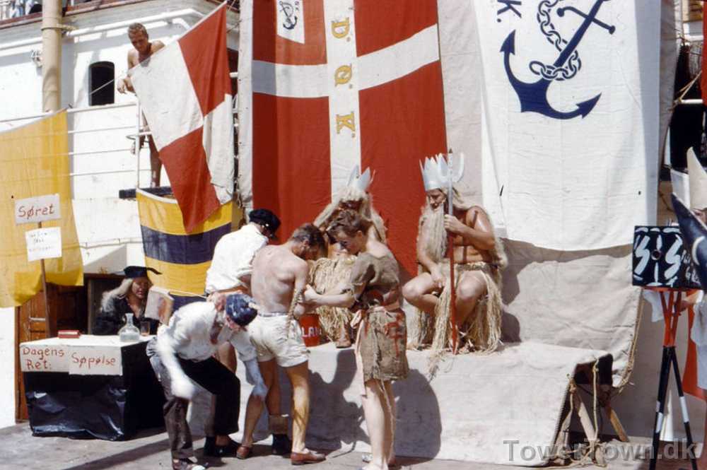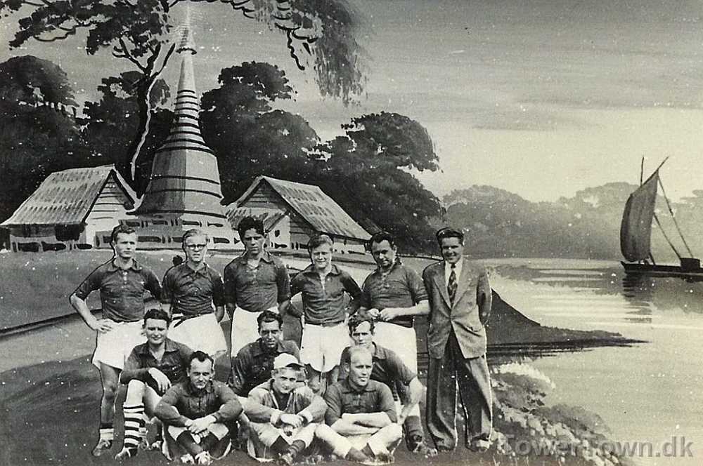 Anton har igennem en menneskealder besejlet de syv verdenshave som bådsmand i ØK ...... og har således modtaget mange af disse indkaldelser.KOREA var et af hans skibe.Anton har mange muntre beretninger fra tiden til søs ...... ikke mindst om de mange Liniedåber han har oplevet og været arrangør af.Her er det vist nogle af hans folk der er i land for at spille fodbold.Anton har også gennem tiden haft en nær tilknytning til Sømændenes Forbund. HusbyggerOrganisator