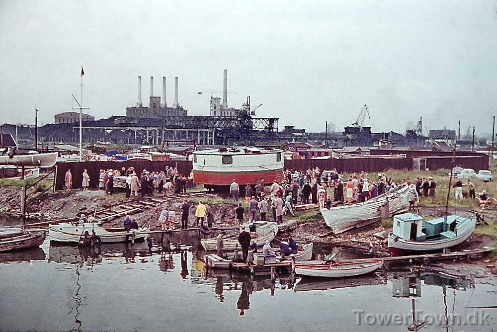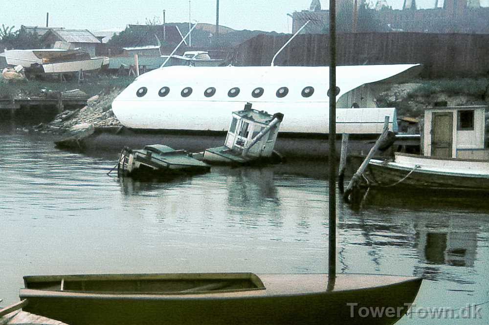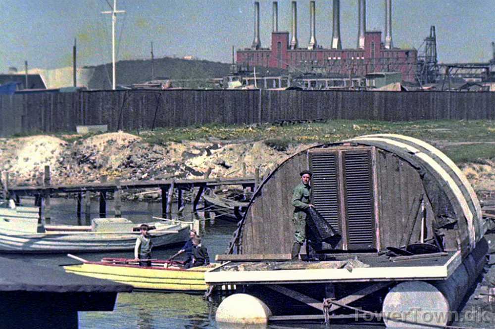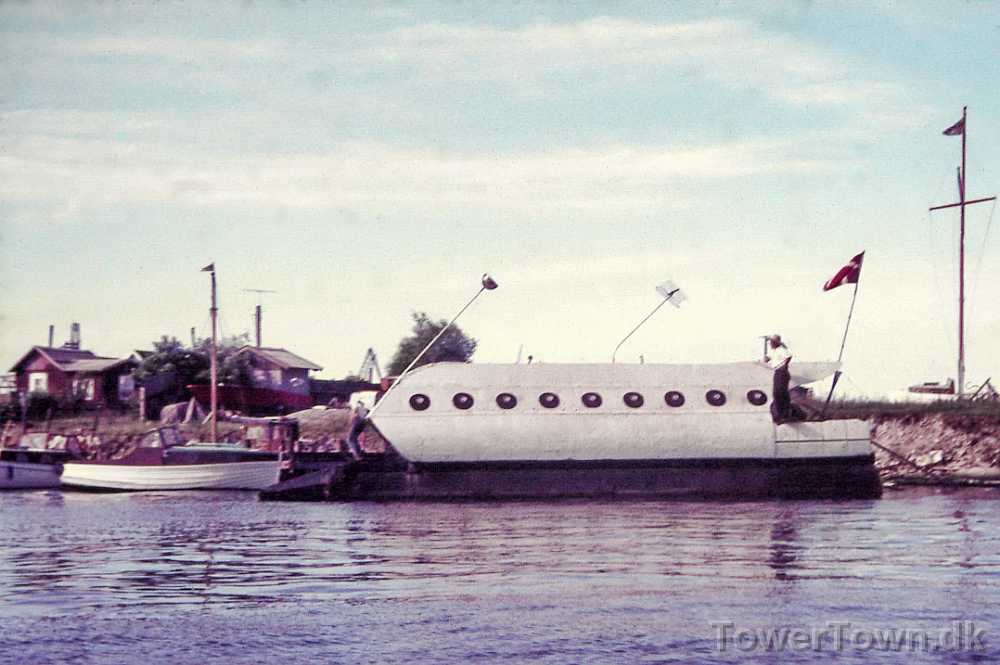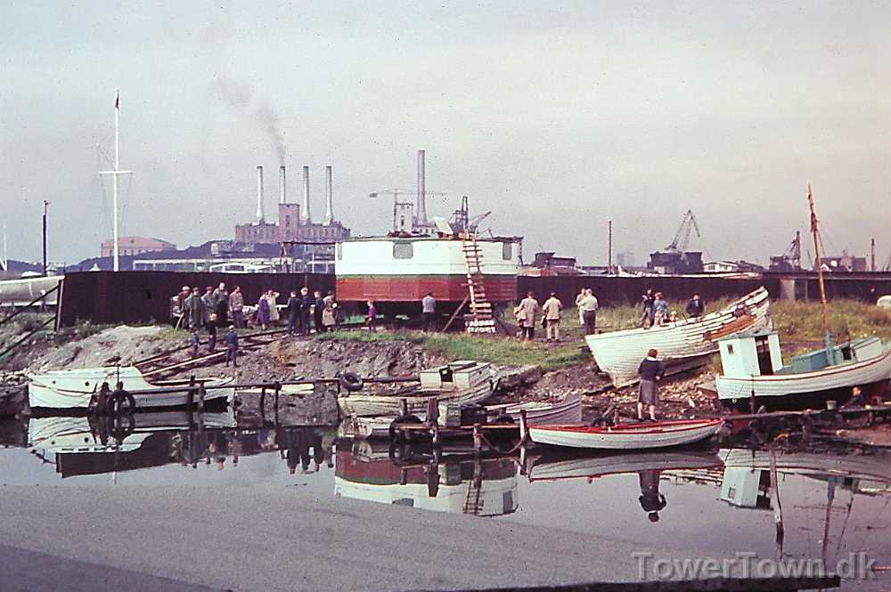 Der måtte hjælp til fra en af havnens store slæbebåde før husbåden kom fri af skrænten.