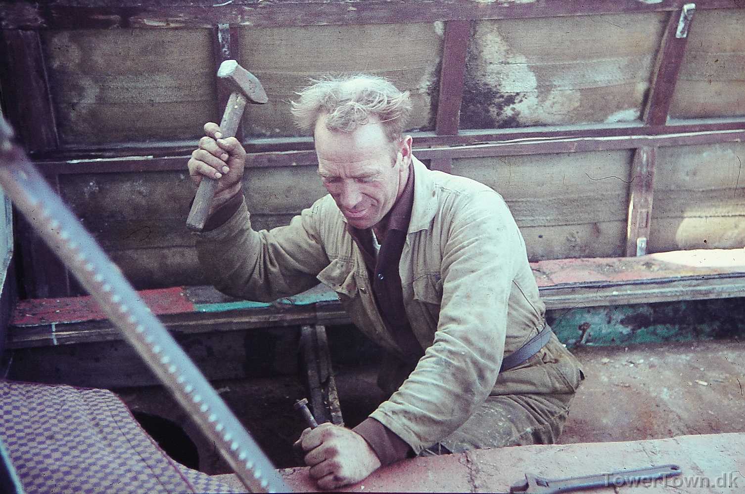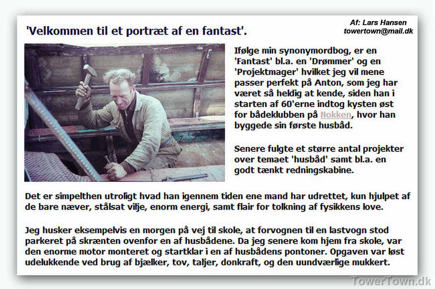 Anton er ikke bleg for lidt sjov i gaden, som her hvor han poserer foran sit atelier, der er en forhenværende forretning bygget om til lejlighed.