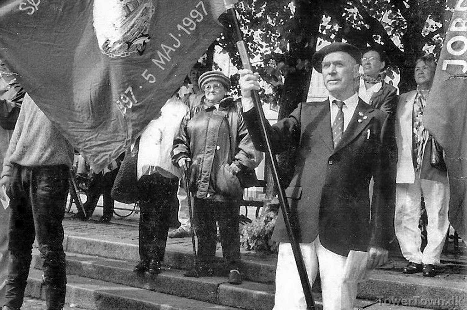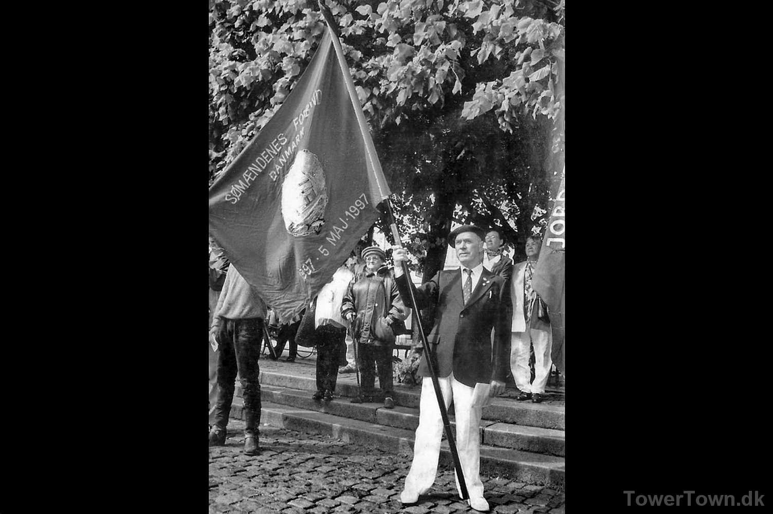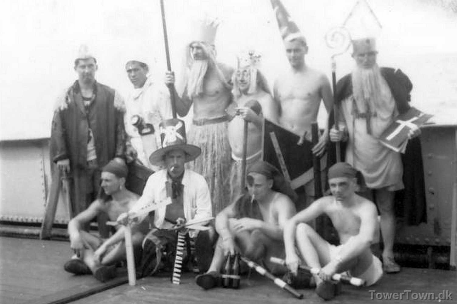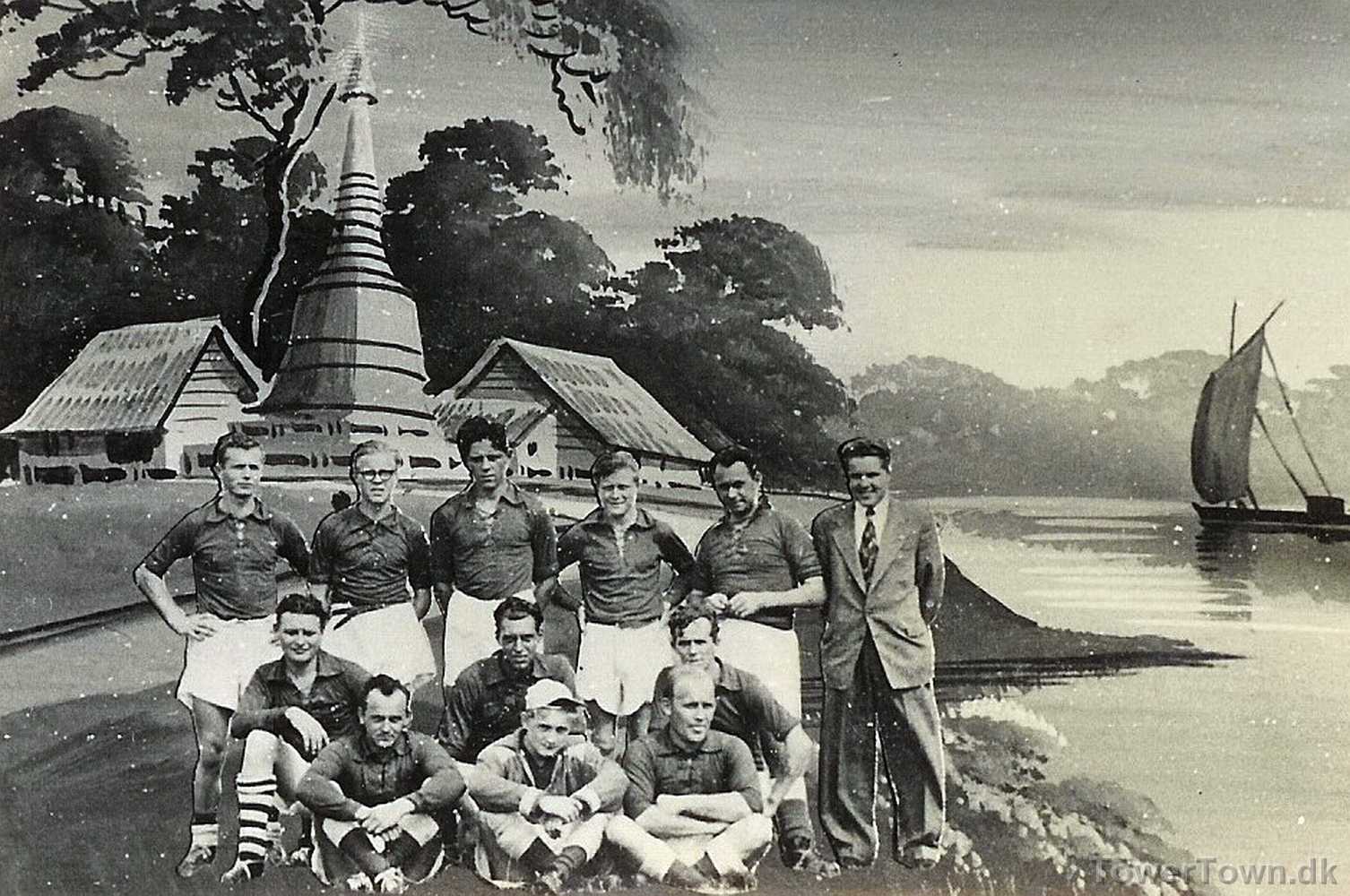 Anton har igennem en menneskealder besejlet de syv verdenshave som bådsmand i ØK ... ... og har således modtaget mange af disse indkaldelser. KOREA var et af hans skibe. Anton har mange muntre beretninger fra tiden til søs ... ... ikke mindst om de mange Liniedåber han har oplevet og været arrangør af. Her er det vist nogle af hans folk der er i land for at spille fodbold. Anton har også gennem tiden haft en nær tilknytning til Sømændenes Forbund. HusbyggerOrganisator